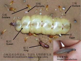 1. 散白蟻屬:包括黃胸散白蟻和黑胸散白蟻。因群體小而分散,故稱為散白蟻。他們對(duì)建筑物破壞性較大,主要危害地?cái)R柵、梁、木柱子、門框、地板等。一般在每年3—5月上旬中午前后,長(zhǎng)翅繁殖蟻開始分飛,建立新家庭。