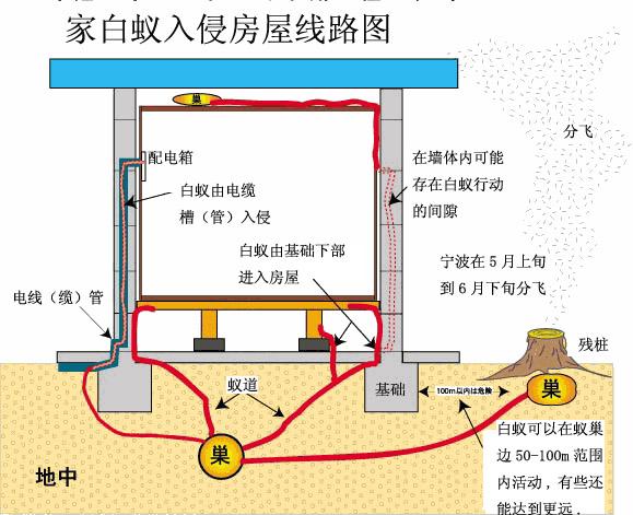 2) 空調(diào)的使用,使得室內(nèi)的溫度常年保持在20℃以上,這些都為白蟻的繁衍生存提供了基本和優(yōu)良的小生態(tài)環(huán)境條件。